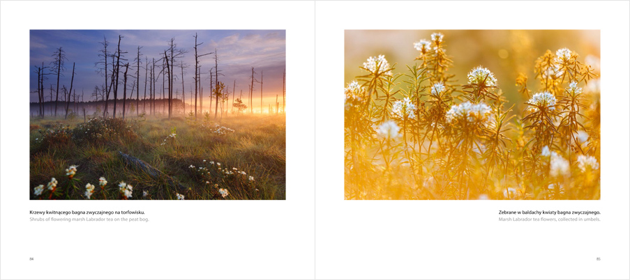 Zapraszam Państwa na fotograficzną wyprawę po rezerwacie przyrody Obary, którą przygotowałem w formie autorskiego albumu z okazji jubileuszu 50-lecia jego istnienia. Album w całości poświęcony jest jednemu miejscu, miejscu które zafascynowało mnie ponad 19 lat temu gdy trafiłem w nie po raz pierwszy. Niezwykły charakter rozległego torfowiska z karłowatymi sosnami, snującymi się o świcie mgłami oraz całą paletą odgłosów dzikiej przyrody z klangorem żurawi na czele sprawiło, że Obary stały się moją oazą spokoju, miejscem czerpania radości z pasji fotografowania przyrody. Wydawnictwo zawiera 208 stron objętości i znalazło się w nim 200 fotografii przedstawiających przyrodę tego niezwykłego miejsca jakim są dla mnie Obary. Ponadto wnętrze wypełniają podstawowe informacje o rezerwacie, podpisy pod fotografiami, 4 rysunki wykonane ołówkiem i węglem oraz obraz (akryl na płótnie). Format albumu to 270 x 240 mm, druk na papierze Magno Satin 170g, oprawa twarda szyta nićmi, teksty w języku polskim i angielskim. Każdy egzemplarz albumu jest numerowany oraz odręcznie przeze mnie podpisany. Skład i przygotowanie do druku zostało wykonane w niezawodnym Wydawnictwie Lipiec, a druk zlecony Drukarni Totem co gwarantuje łącznie najwyższy poziom tej realizacji.